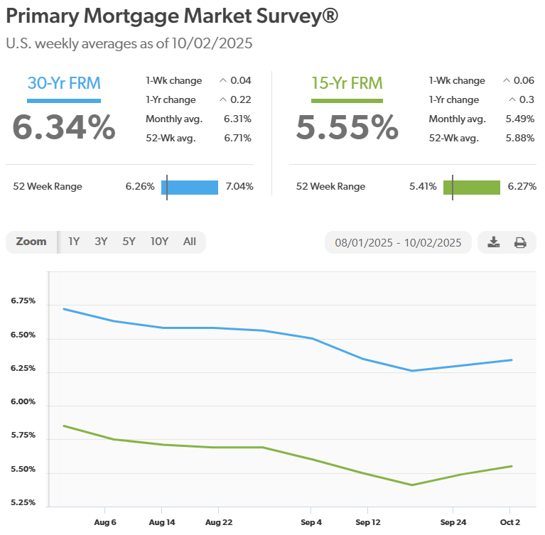 In the last couple days in response to the government shutdown and concerns about that weakening the economy the 10-year bond has dropped back down below 4.10%. So we can see again that the 10-year bond is moving in response to the perceived strength of the economy and not in response to expectations about future Federal Reserve interest rates. In fact the shutdown could act to help the mortgage market if it were to weaken the economy just enough to bring mortgage rates a little lower. These things tend to be complicated and interconnected. What may seem damaging on the surface could be beneficial in some respects at least as it relates to potential interest rates.