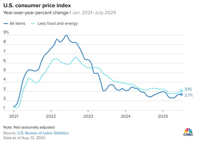 The July inflation report showed inflation was just a little bit better than expected. It is still not fully cooperating, but it is continuing to be in the middle ground between fully solved and not quite going away.
